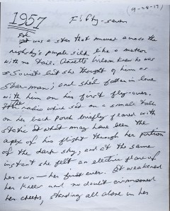 As you will see, though, the concept of the story, having to do with either Sputnik or Vostok, was ultimately abandoned, and it evolved into something quite different. Nevertheless, there are certainly traces of “Vox Humana” even in these earliest drafts. I have tried to transcribe the written draft accurately.